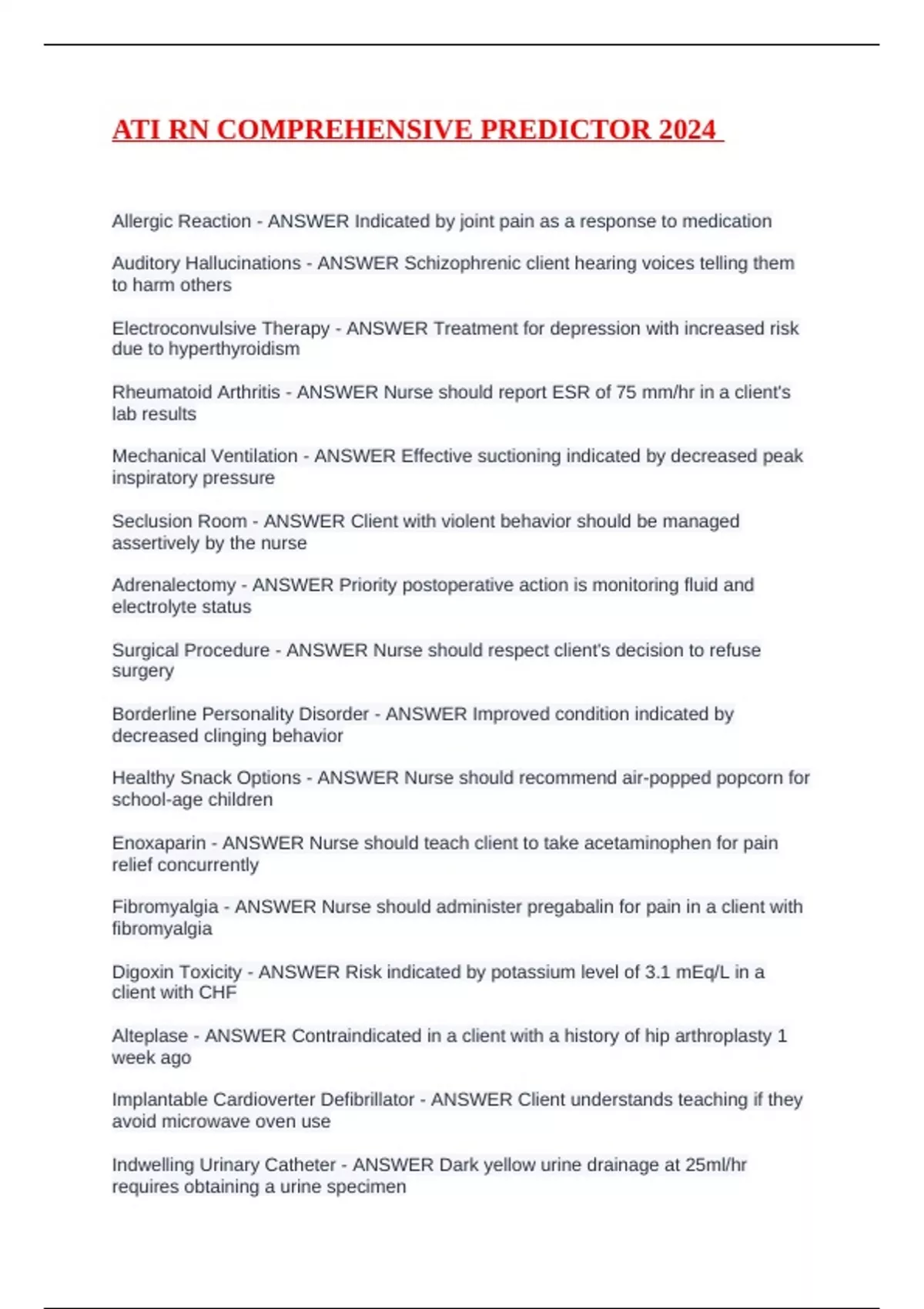 ATI RN COMPREHENSIVE PREDICTOR 2024