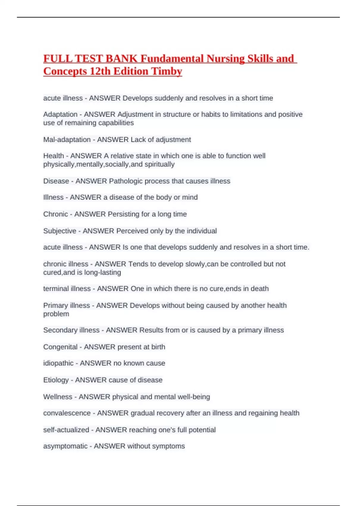 FULL TEST BANK Fundamental Nursing Skills and Concepts 12th Edition Timb1