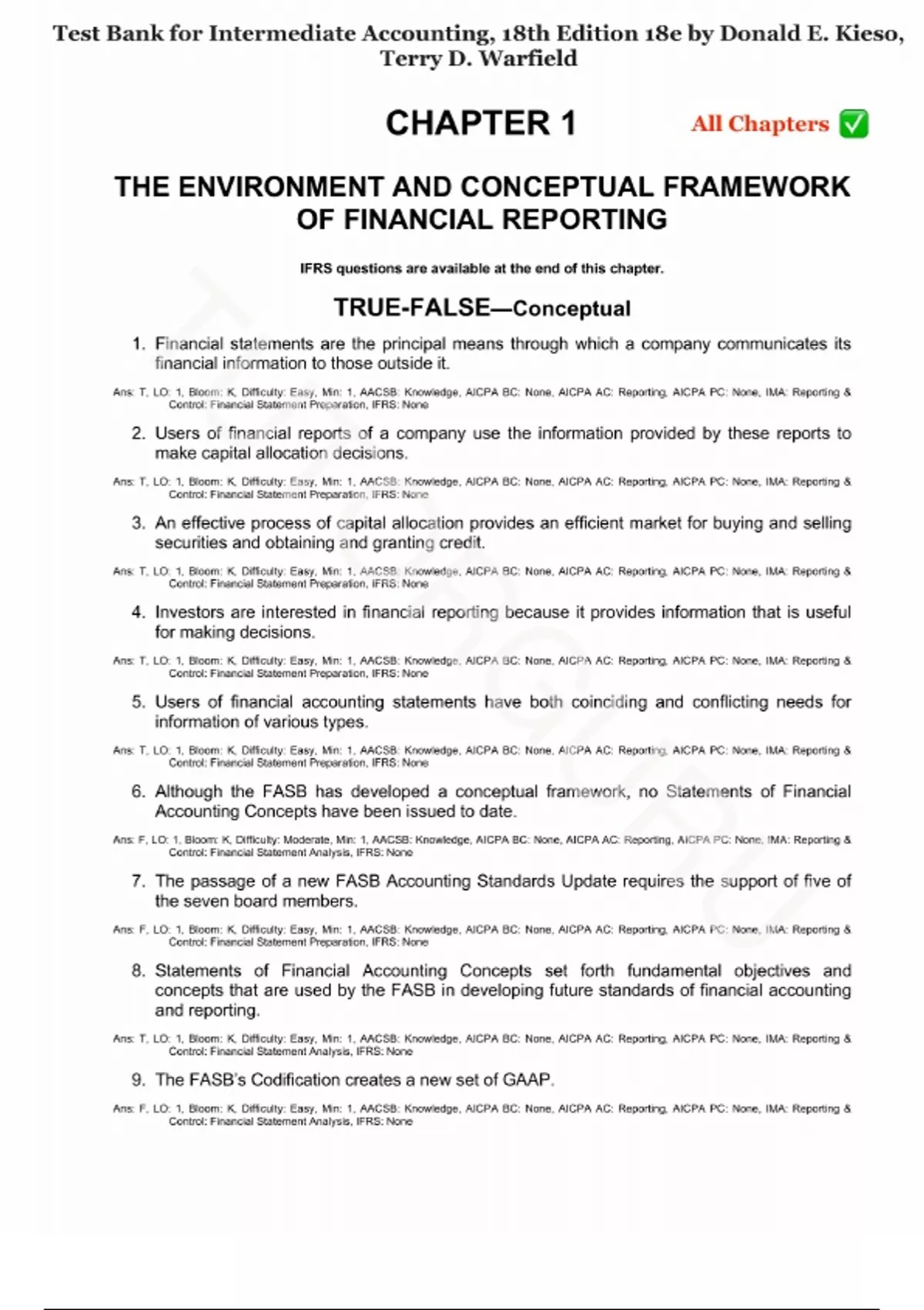 Test Bank - for Intermediate Accounting 18th Edition by Donald E. Kieso, Jerry J. Weygandt, Terry D. Warfield, All Chapters | Complete Guide A+