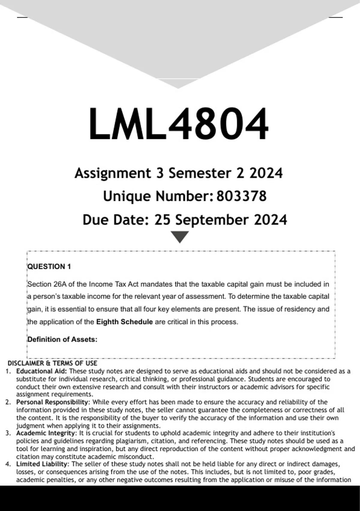 LML4804 Assignment 3 (ANSWERS) Semester 2 2024 - DISTINCTION GUARANTEED