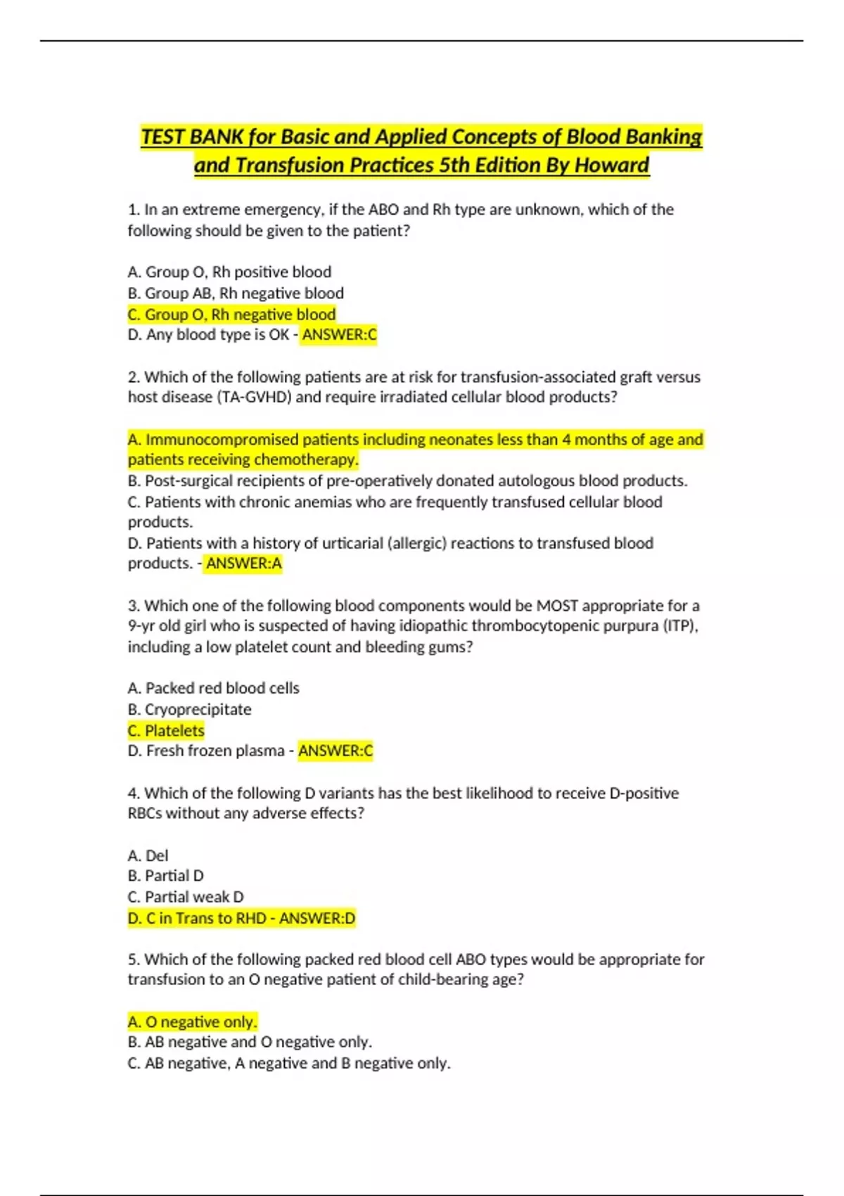 1. In an extreme emergency, if the ABO and Rh type are unknown, which of the