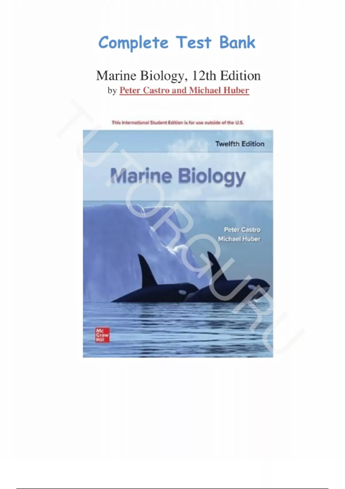 Test Bank - for Marine Biology, 12th Edition By Peter Castro and Michael Huber, All Chapters | Complete Guide A+