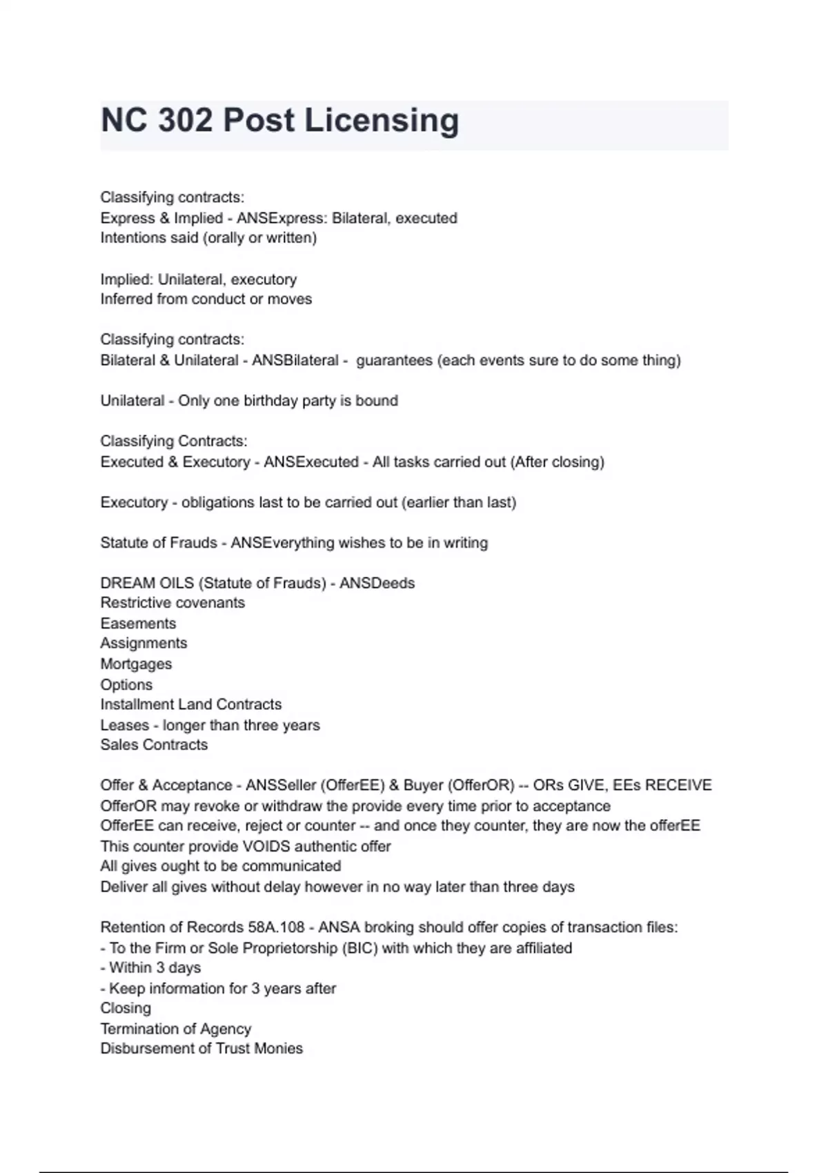 DREAM OILS (Statute of Frauds) - ANSDeeds