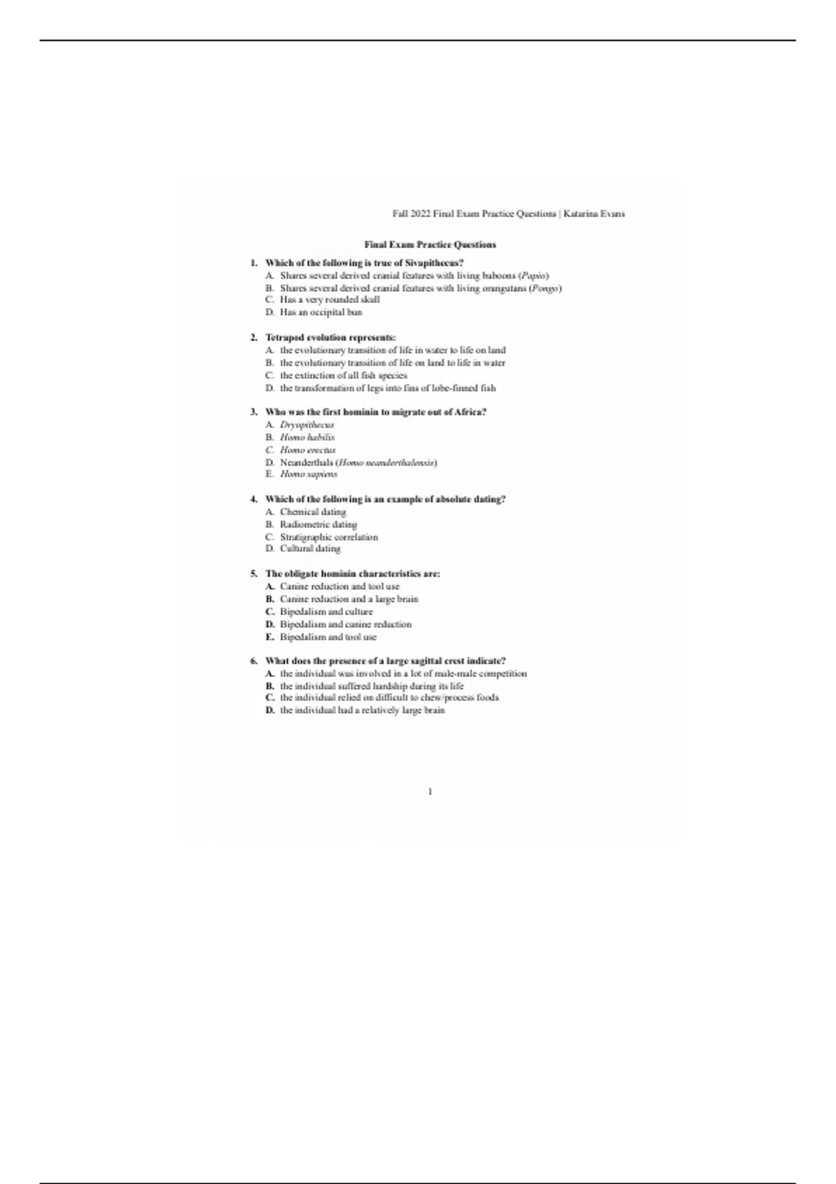 , Fall 2022 Final Exam Practice Questions | Katarina Evans