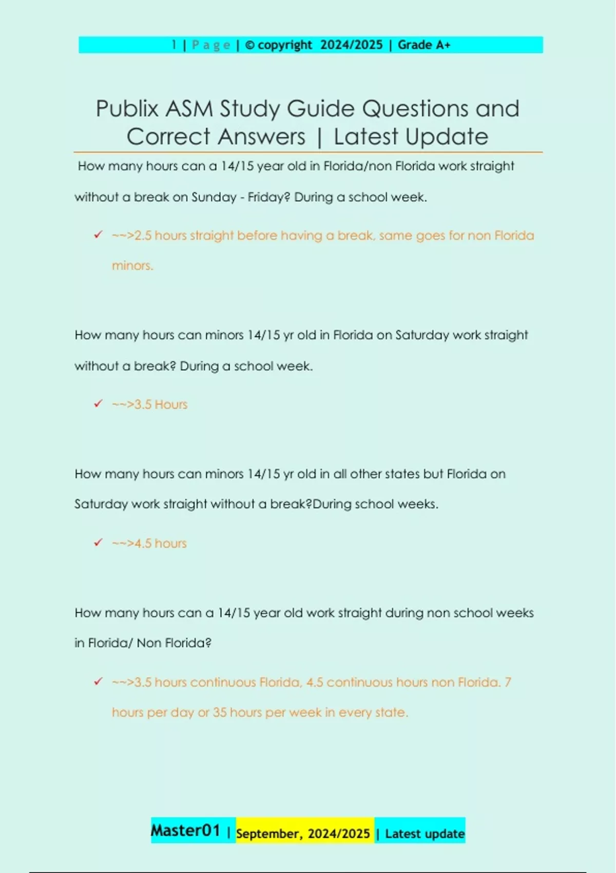 Publix ASM Study Guide Questions and