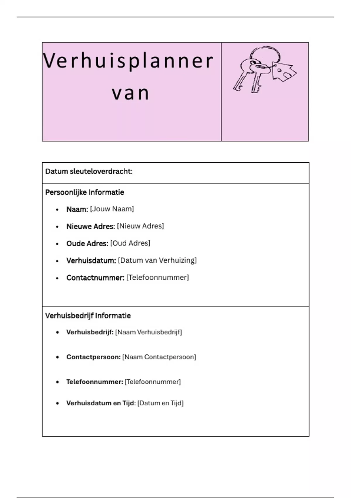 • Verhuisdatum: [Datum van Verhuizing]