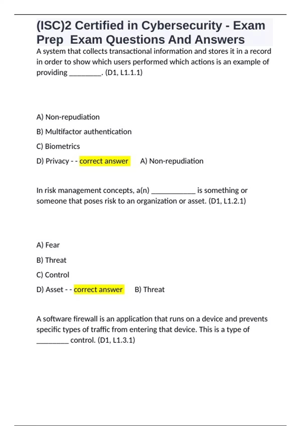 D) Privacy - - correct answer ✅A) Non-repudiation