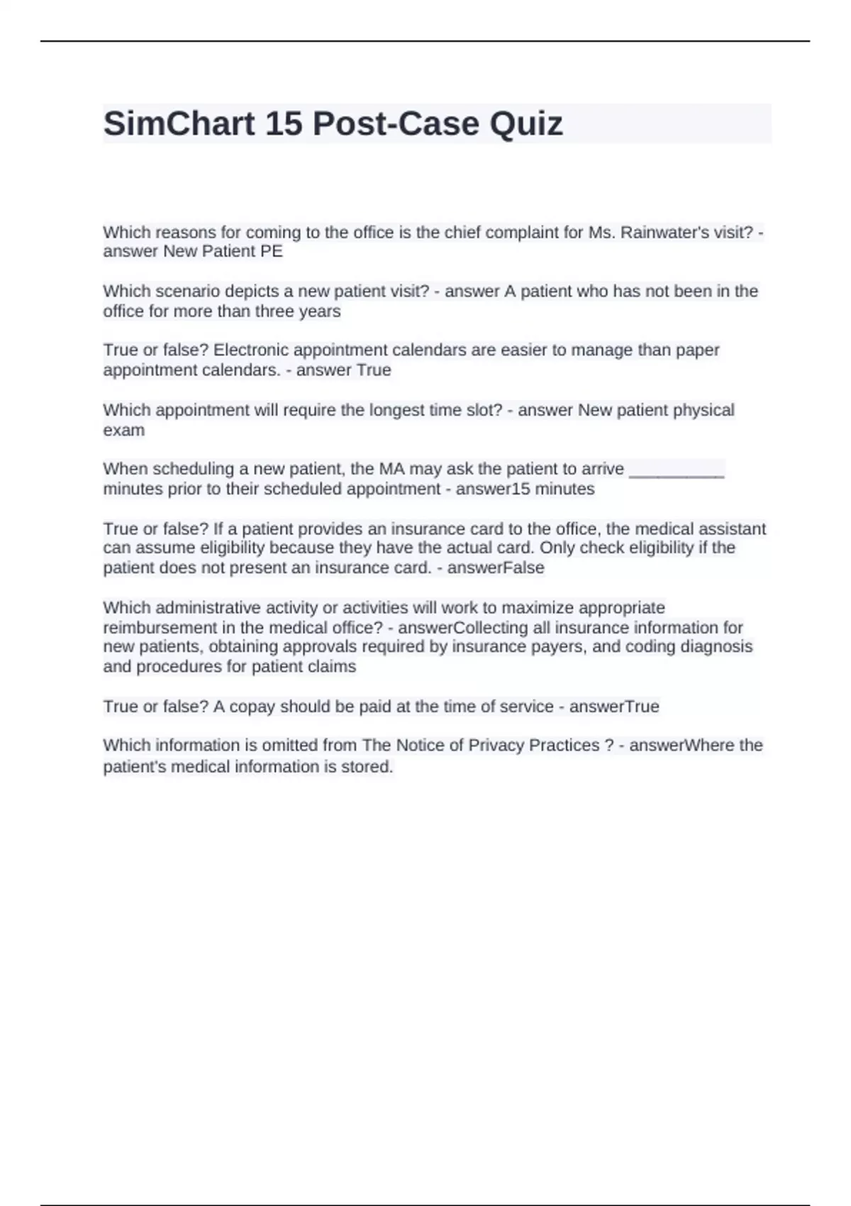 SimChart 15 Post-Case Quiz