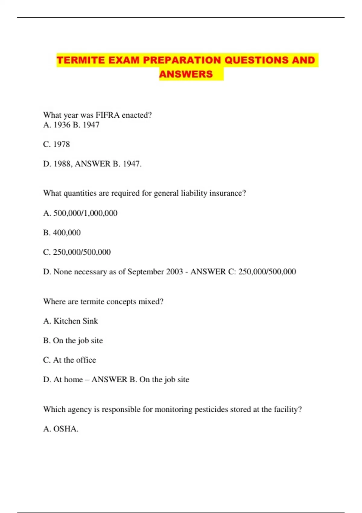 TERMITE EXAM PREPARATION QUESTIONS AND
