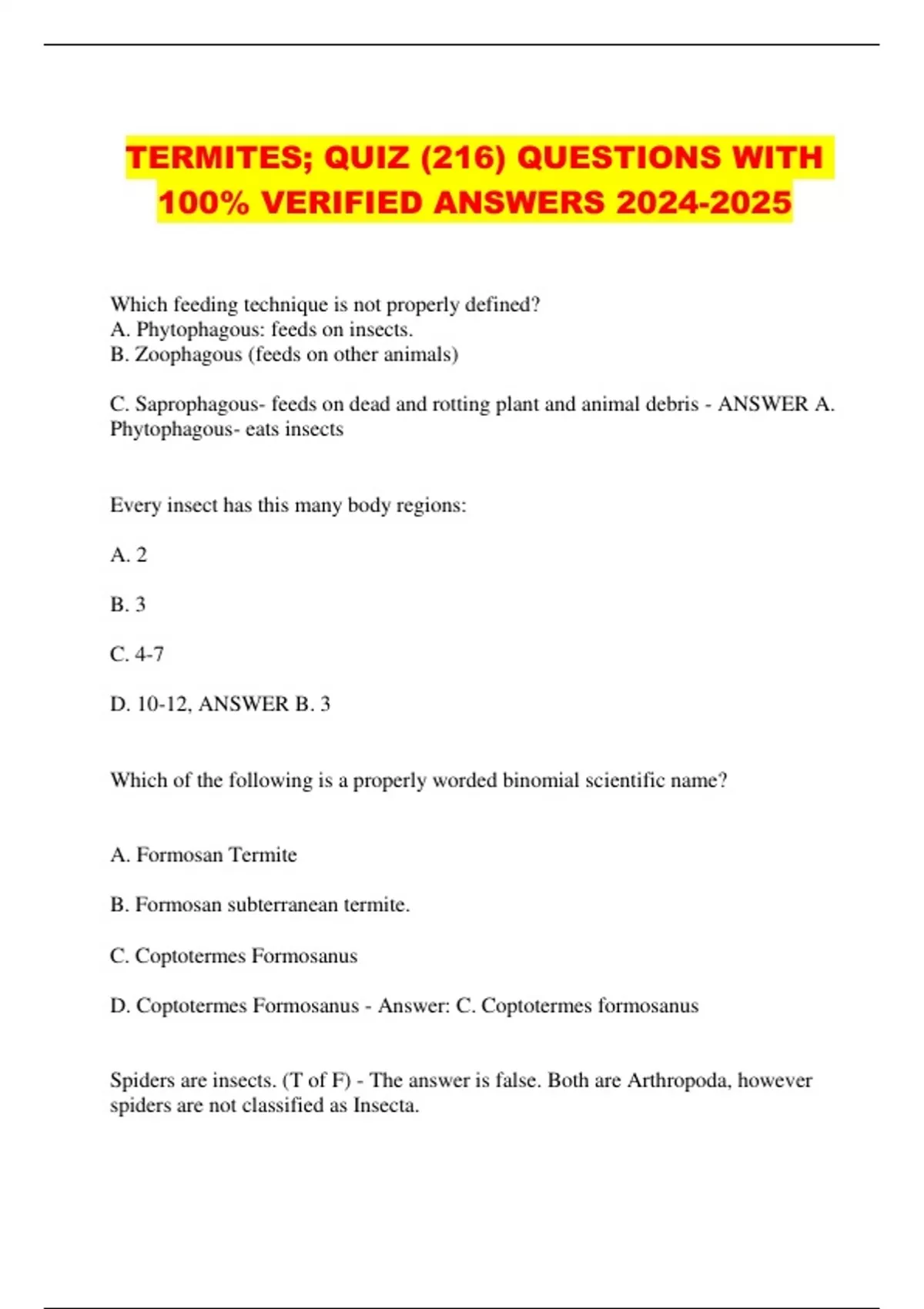 TERMITES; QUIZ (216) QUESTIONS WITH