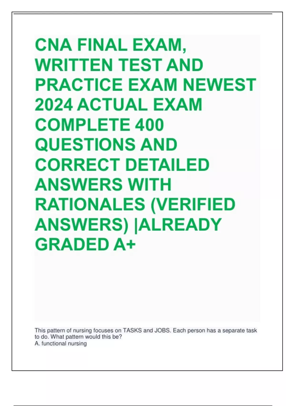 D. patient-focused nursing - ANSWER-A