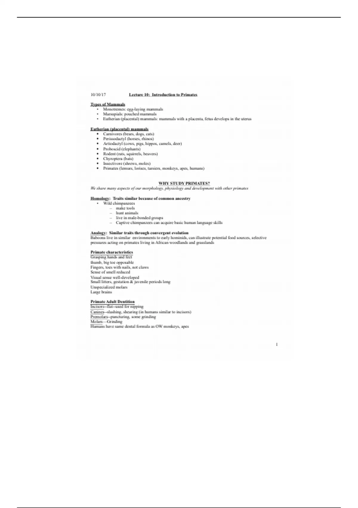 Primates (lemurs, lorises, tarsiers, monkeys, apes, humans)