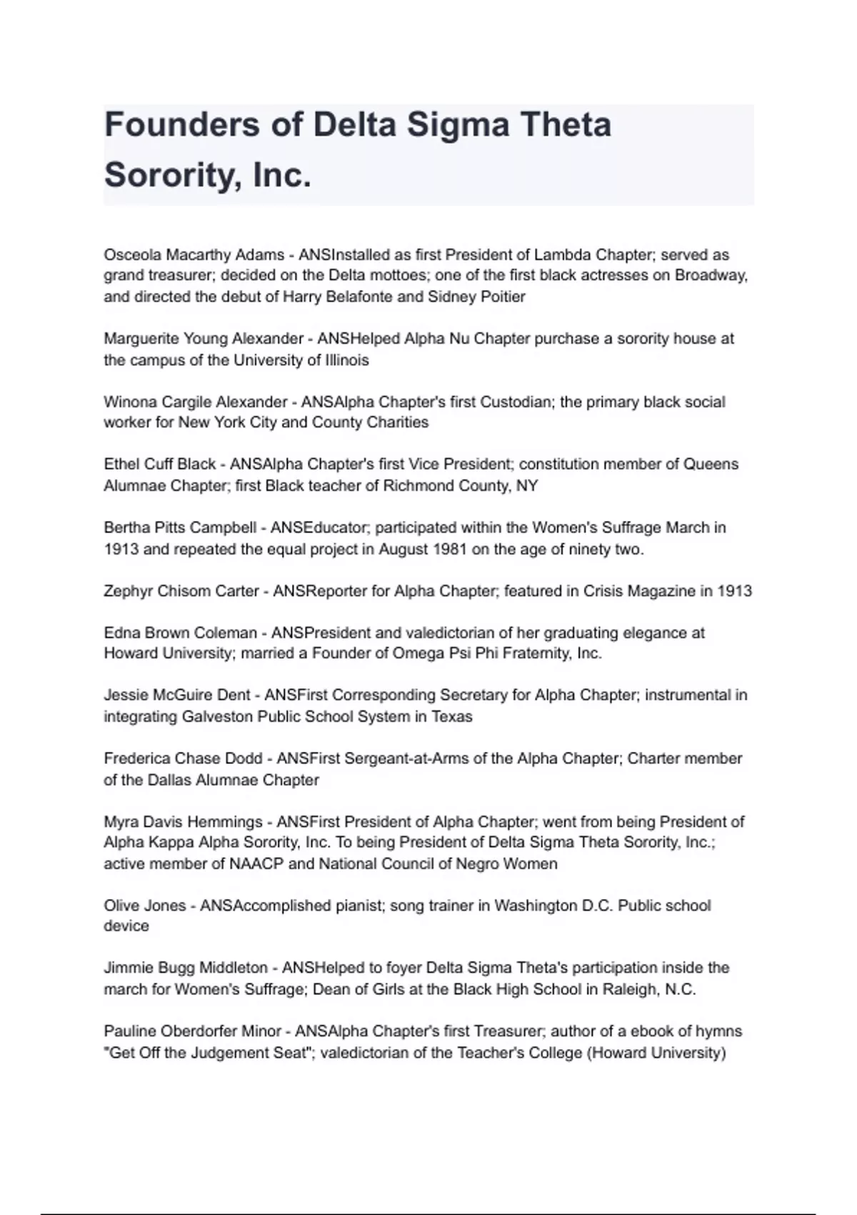 Alpha Kappa Alpha Sorority, Inc. To being President of Delta Sigma Theta Sorority, Inc.;