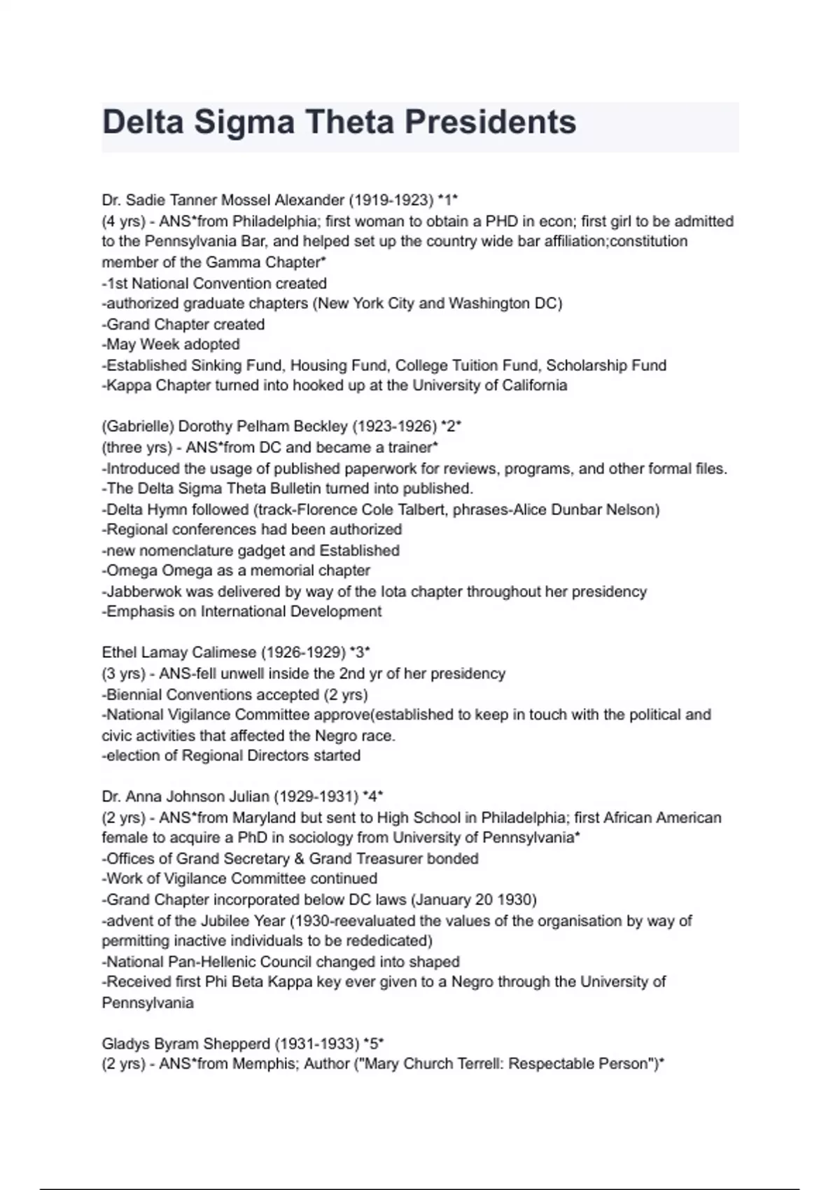 Delta Sigma Theta Presidents