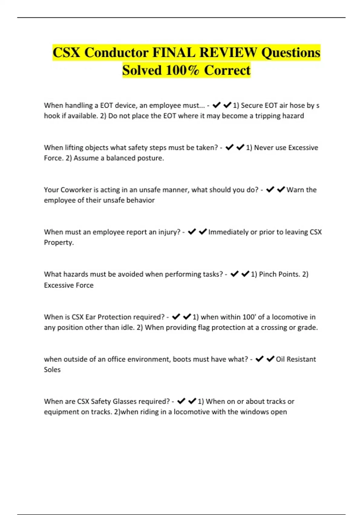When are CSX Safety Glasses required? - ✔✔1) When on or about tracks or