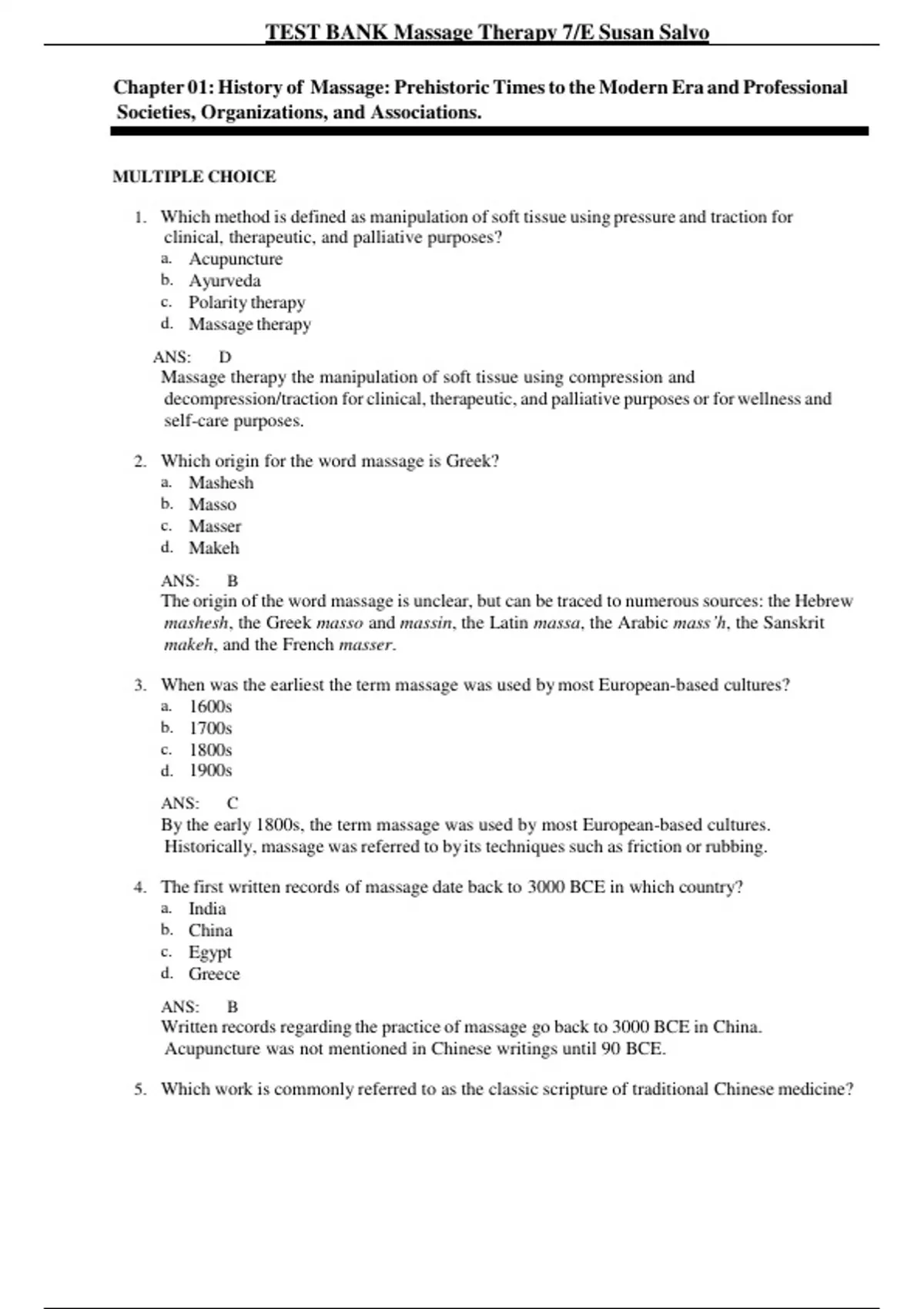 TEST BANK - MASSAGE THERAPY-PRINCIPLES AND