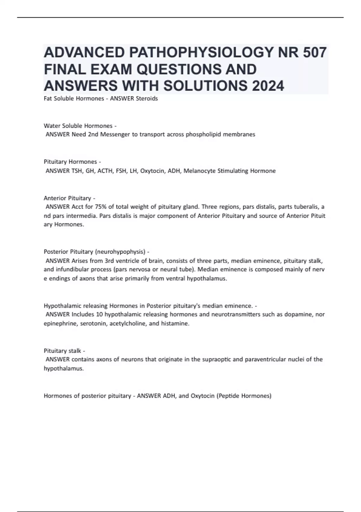 ADVANCED PATHOPHYSIOLOGY NR 507 FINAL EXAM QUESTIONS AND ANSWERS WITH SOLUTIONS 2024