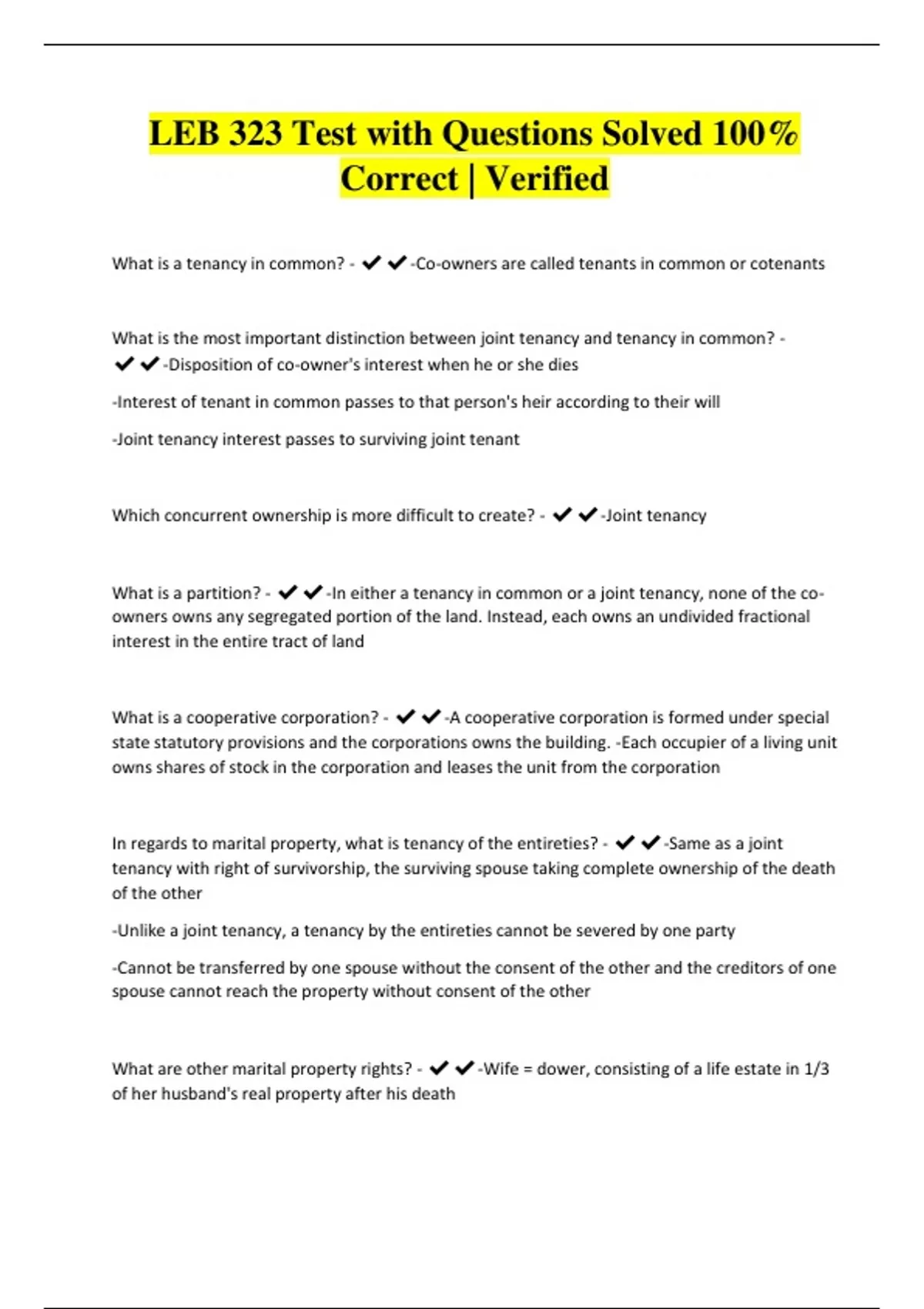 LEB 323 Test with Questions Solved 100%