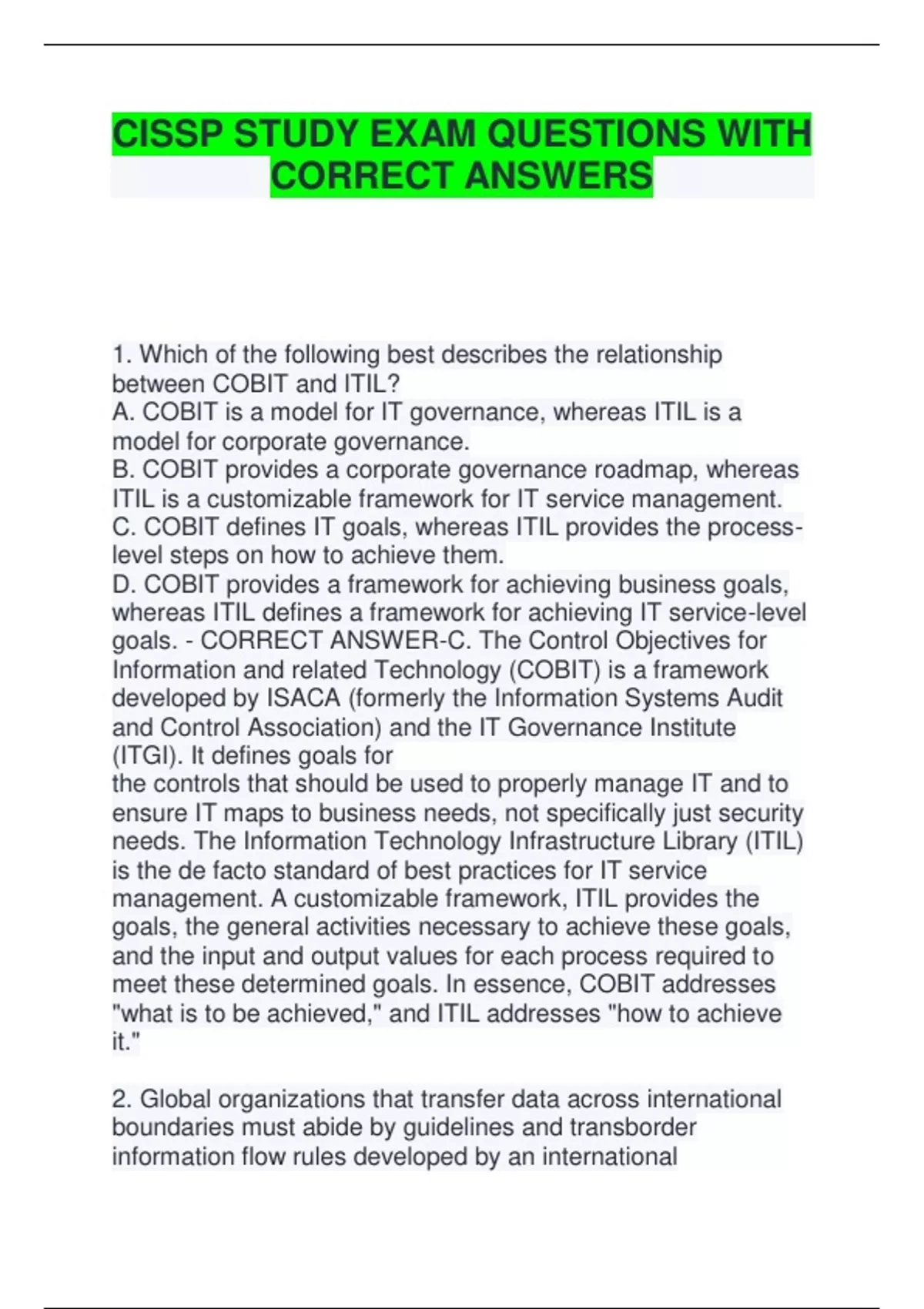 goals. - CORRECT ANSWER-C. The Control Objectives for