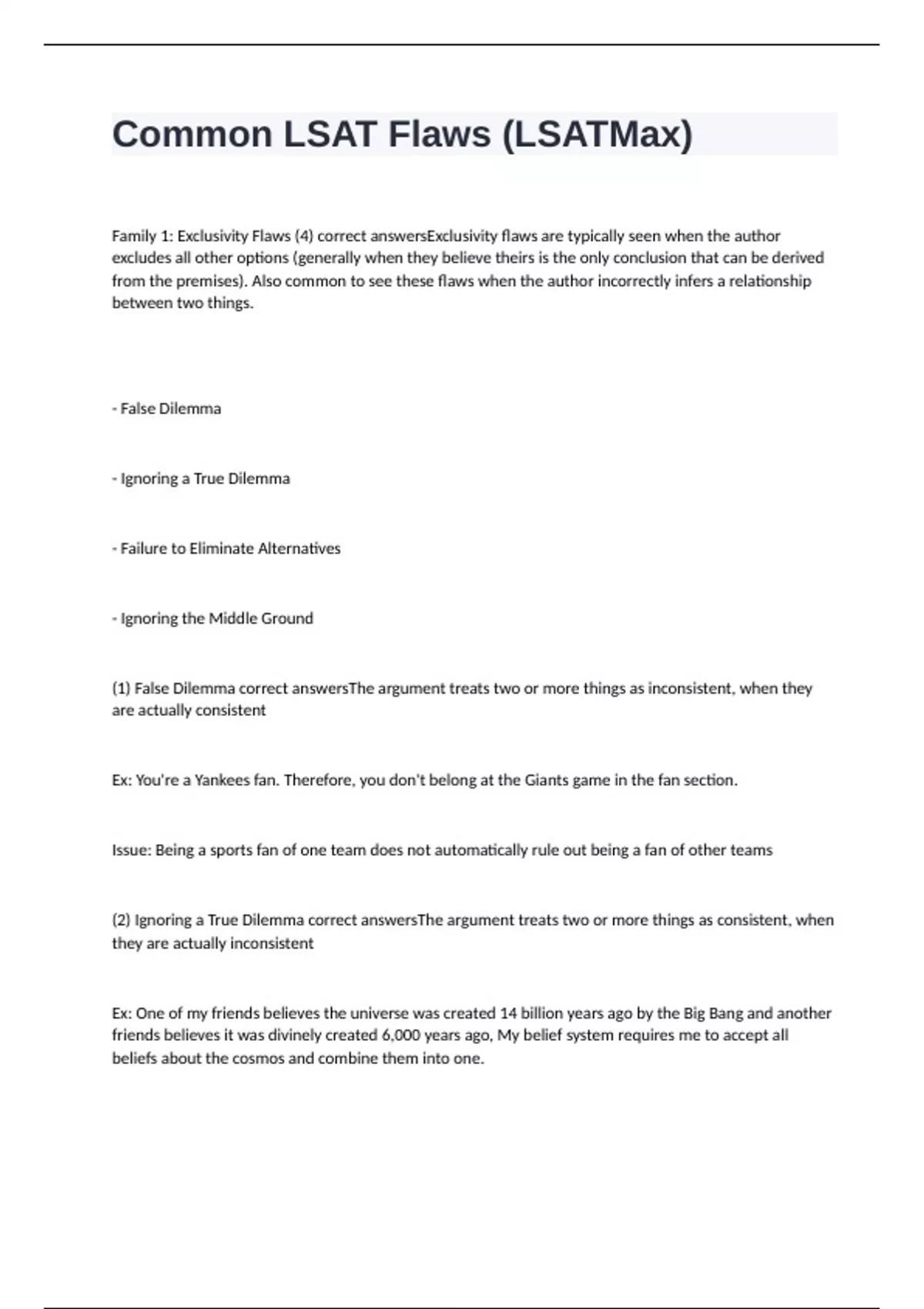 Family 1: Exclusivity Flaws (4) correct answersExclusivity flaws are typically seen when the author