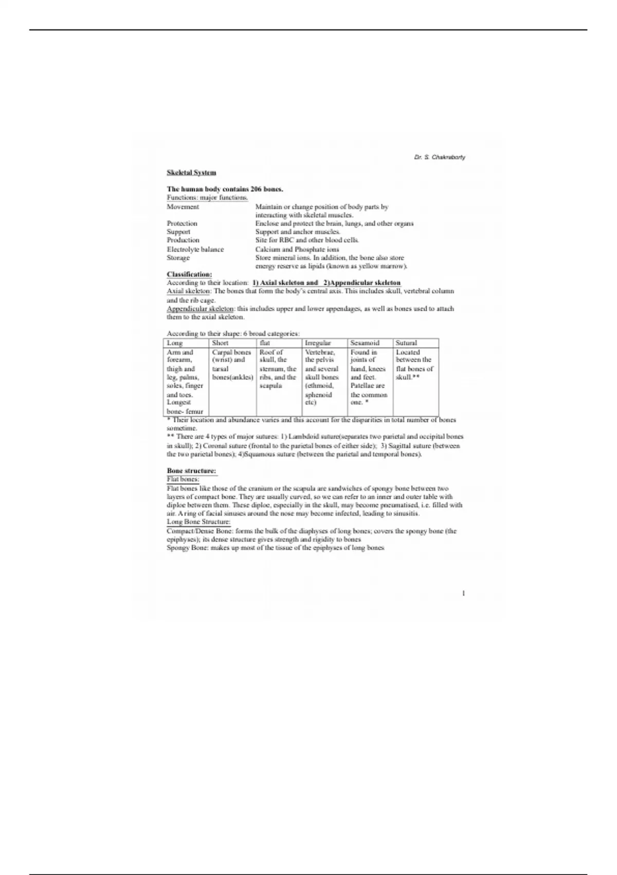 According to their location: 1) Axial skeleton and 2)Appendicular skeleton