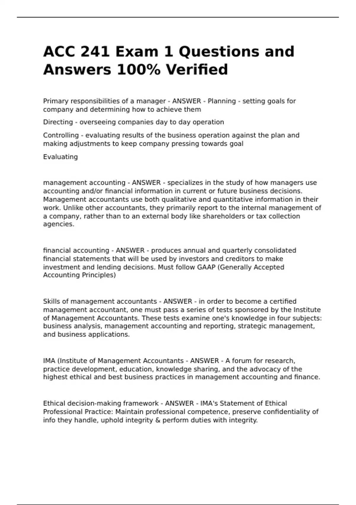 Ethical decision-making framework - ANSWER - IMA's Statement of Ethical