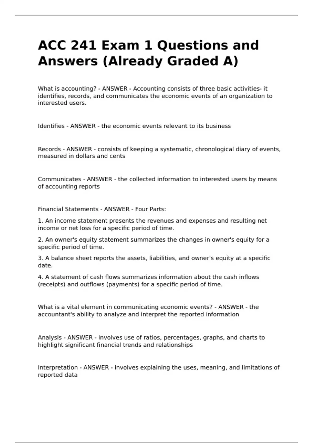 Financial Statements - ANSWER - Four Parts: