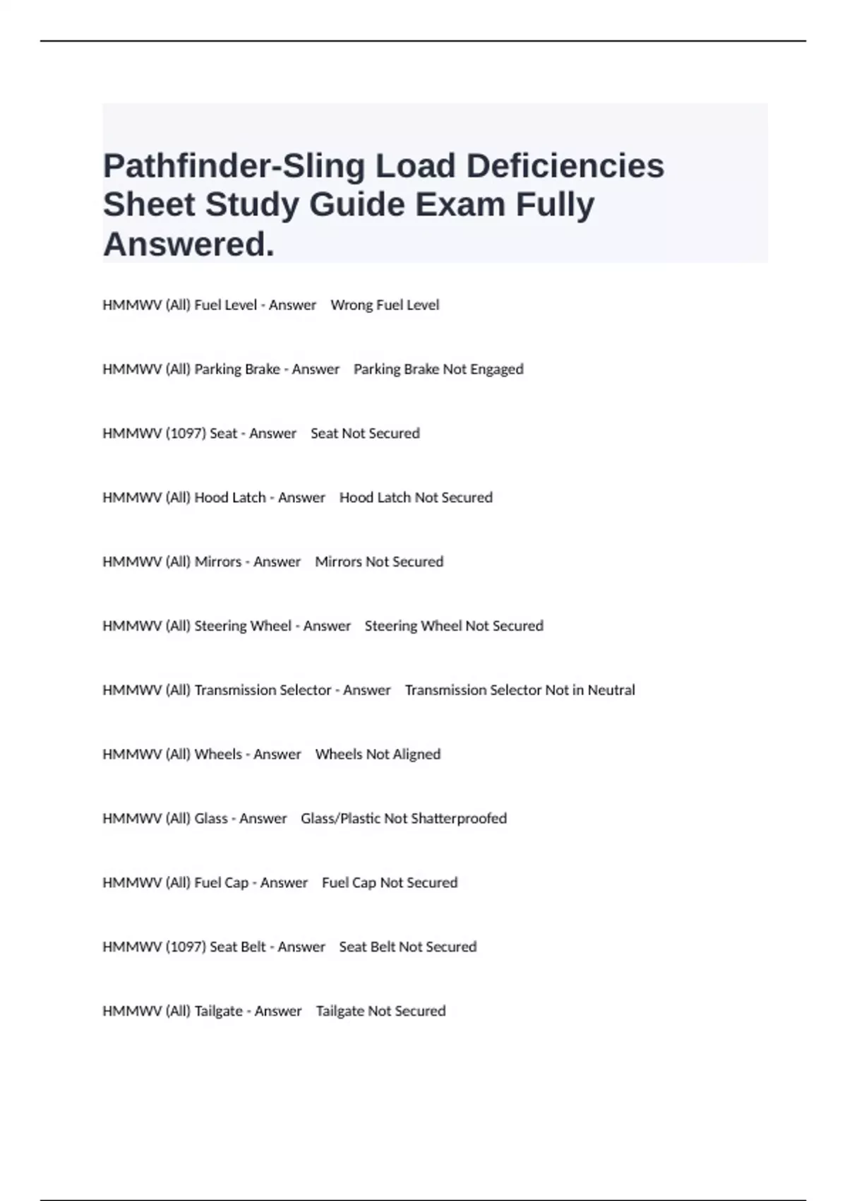 Pathfinder-Sling Load Deficiencies Sheet Study Guide Exam Fully Answered.