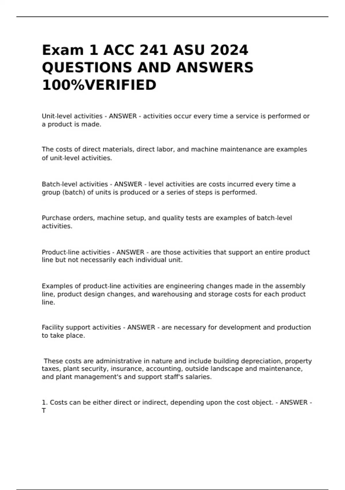 Product‐line activities - ANSWER - are those activities that support an entire product