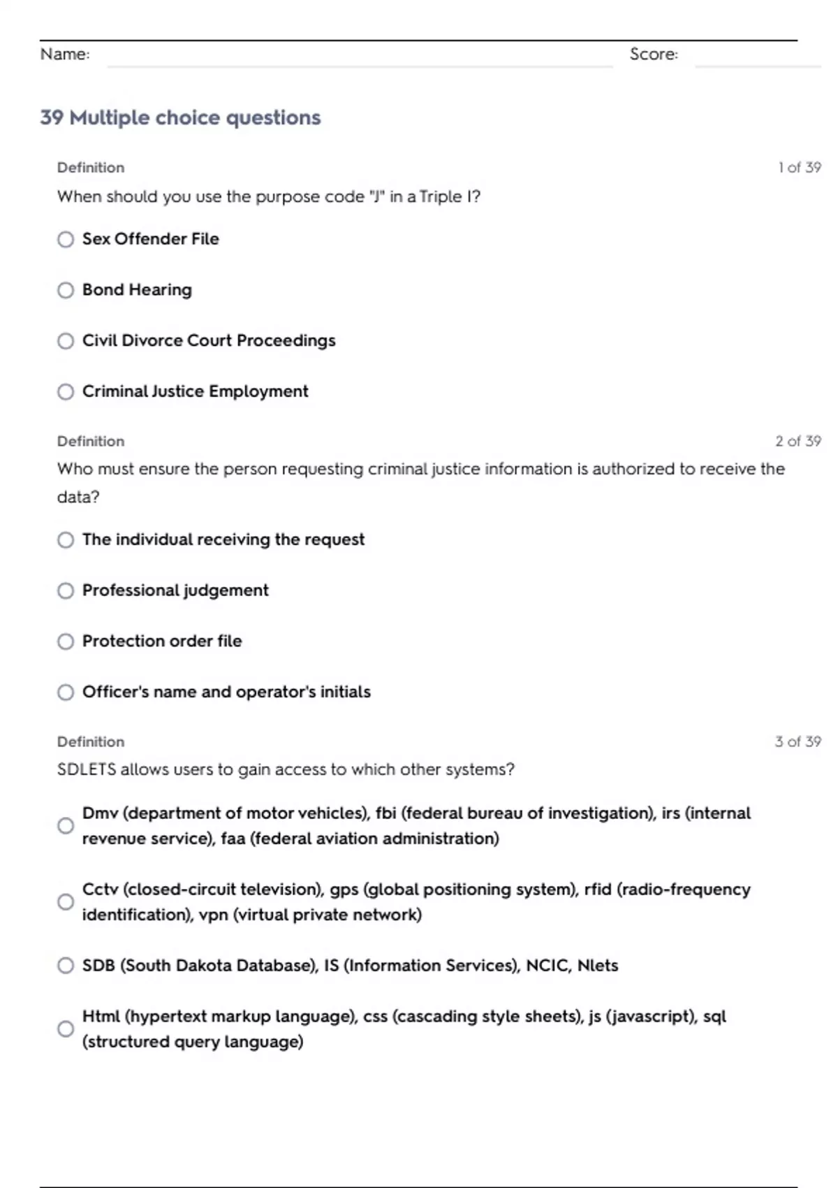 SDB (South Dakota Database), IS (Information Services), NCIC, Nlets