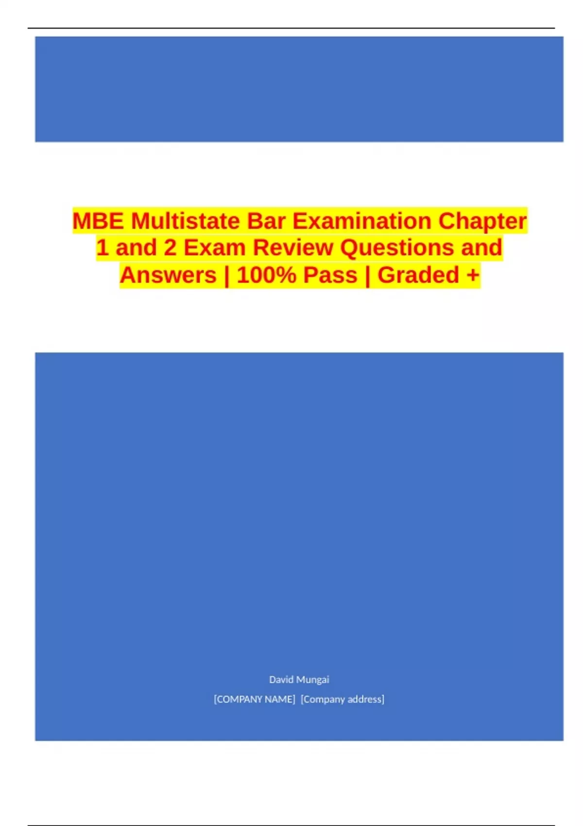 MBE Multistate Bar Examination Chapter 1 and 2 Exam Review Questions and Answers | 100% Pass | Graded +