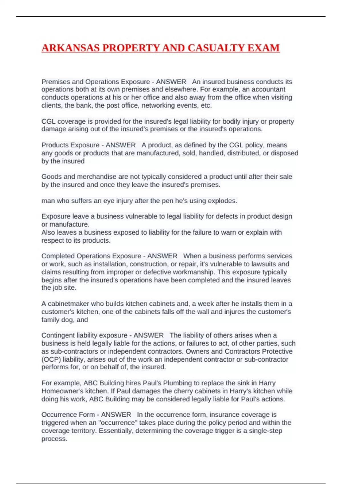 Premises and Operations Exposure - ANSWER An insured business conducts its