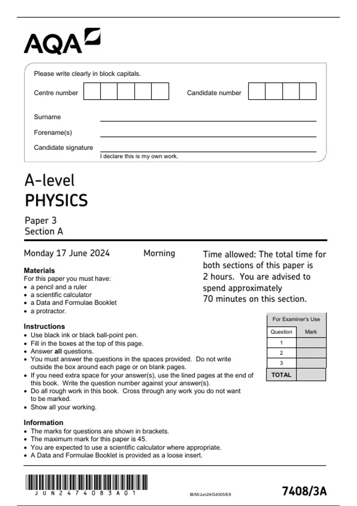 Monday 17 June 2024 Morning Time allowed: The total time for