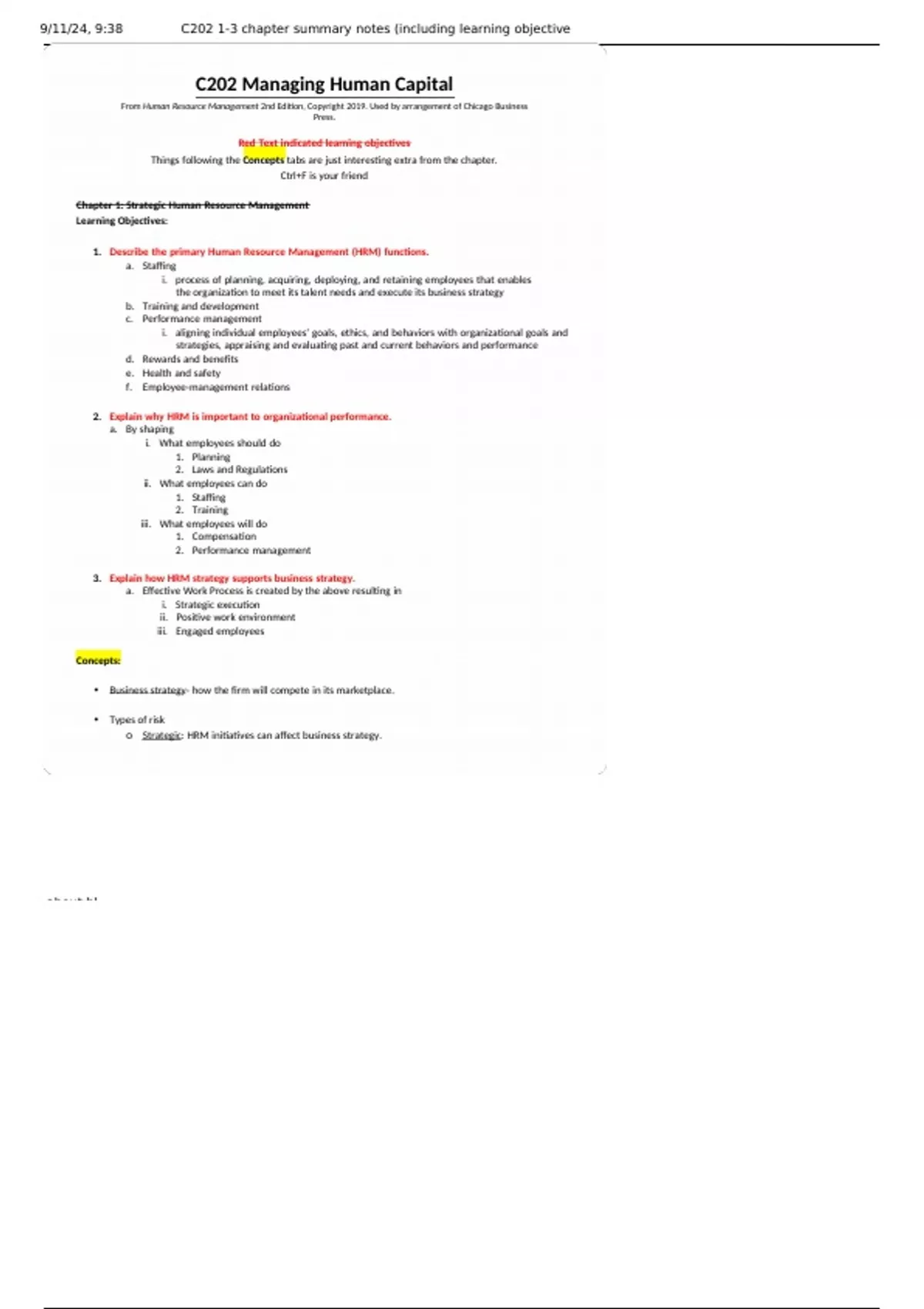 , 9/11/24, 9:38 C202 1-3 chapter summary notes (including learning objective