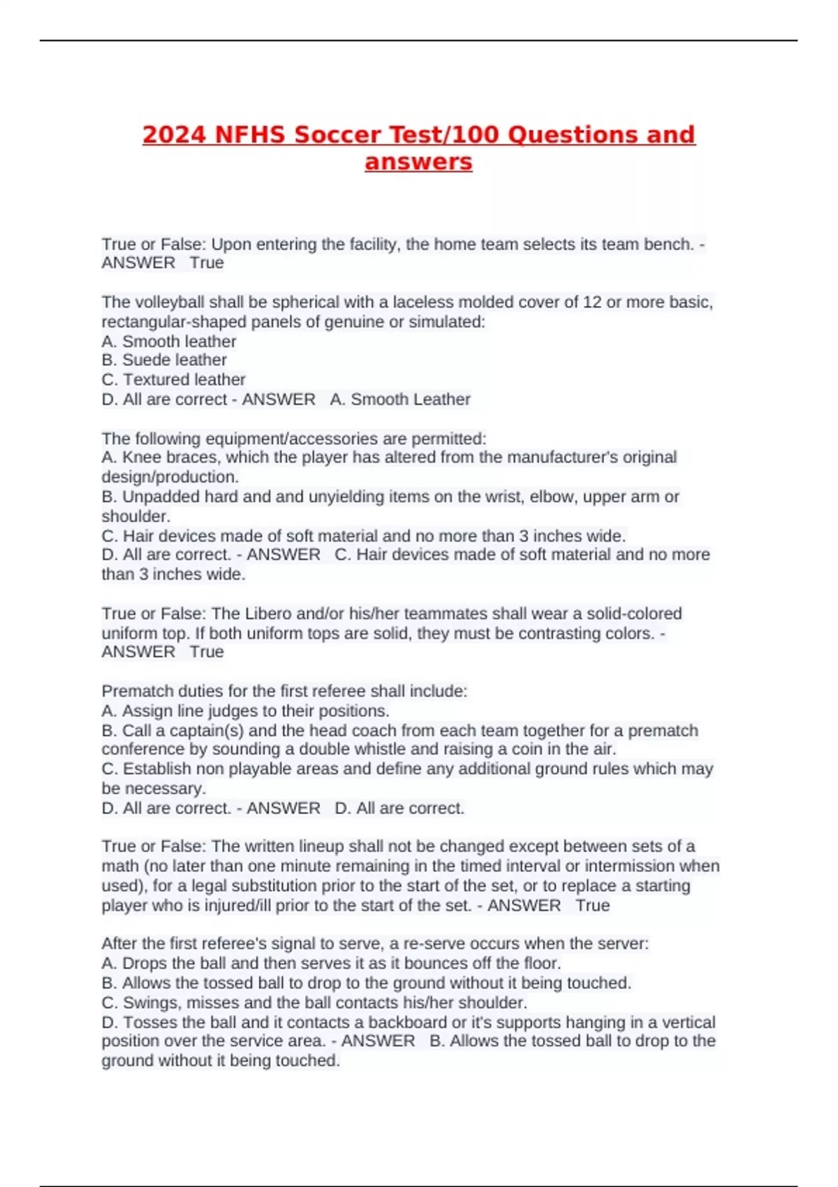 2024 NFHS Soccer Test/100 Questions and