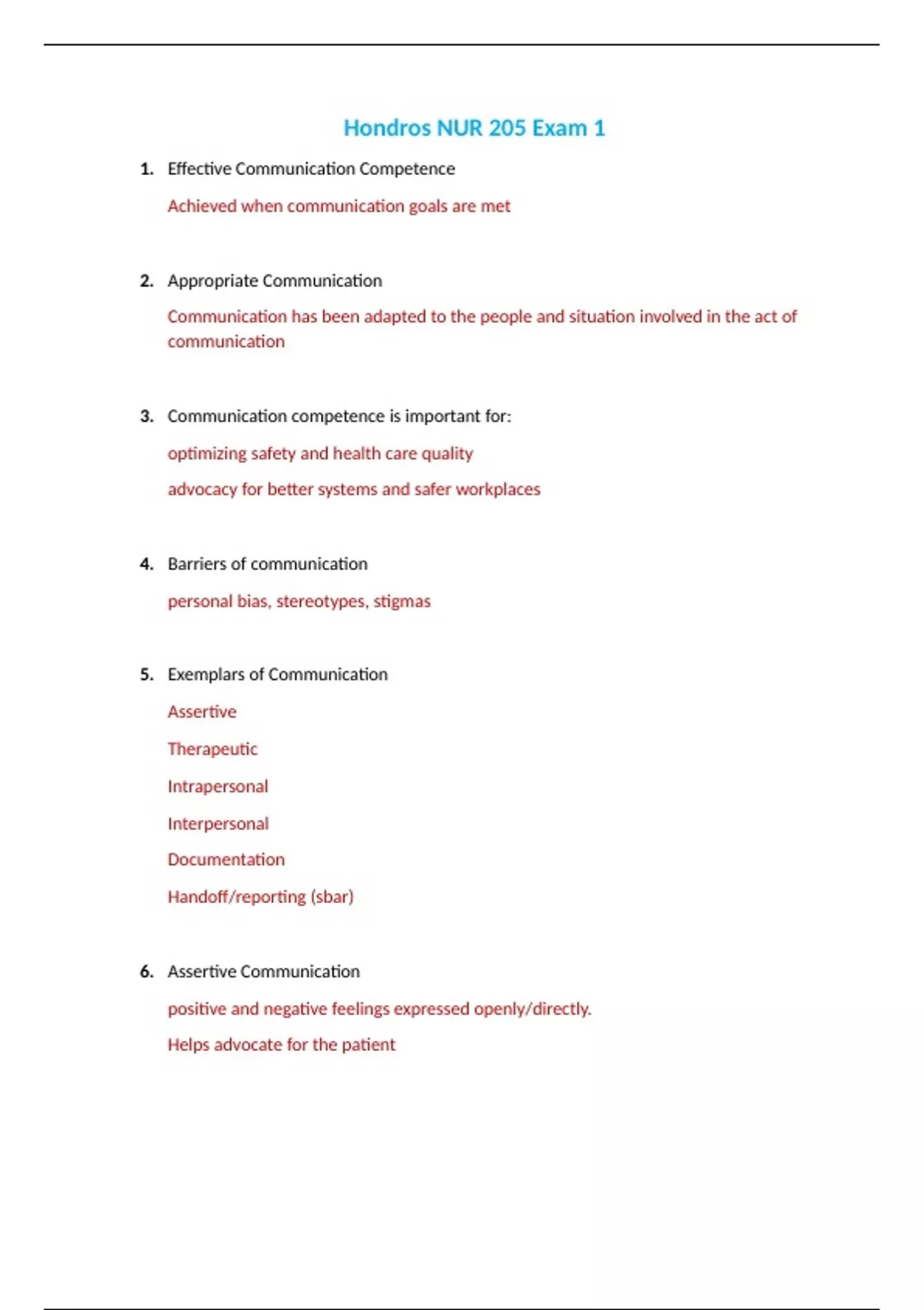 Hondros NUR 205 Exam 1