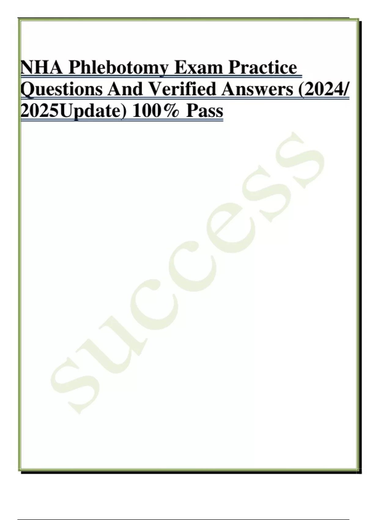 NHA Phlebotomy Exam Practice Questions And Verified Answers (2024/ 2025Update) 100% Pass