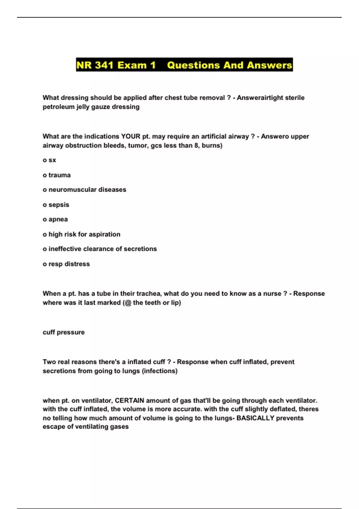NR 341 Exam 1 Questions And Answers