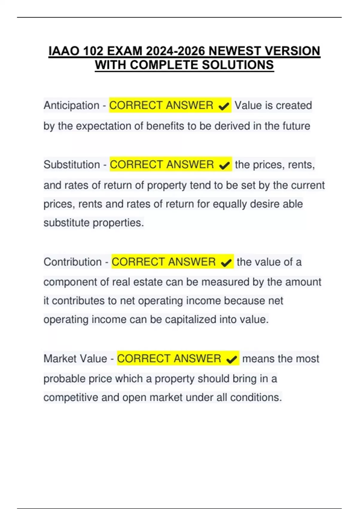 Market Value - CORRECT ANSWER ✔️ means the most