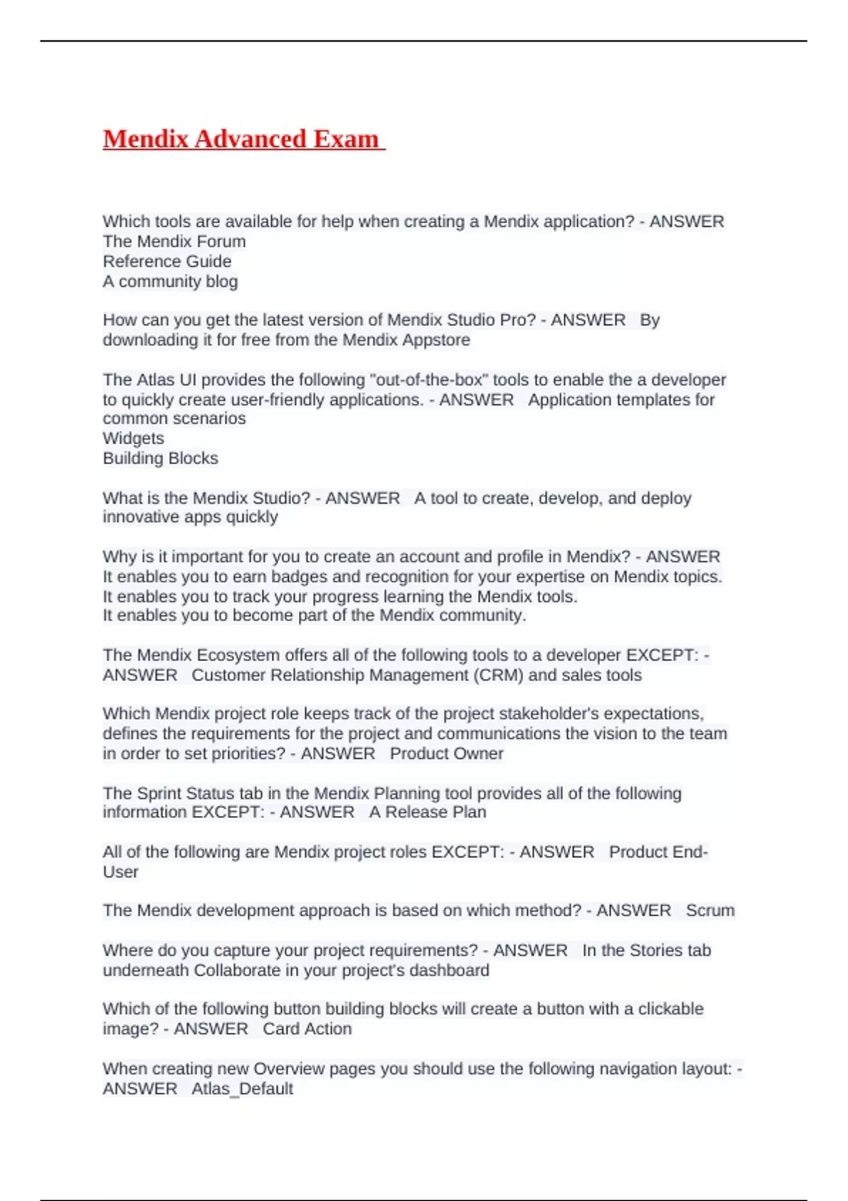 The Mendix development approach is based on which method? - ANSWER Scrum