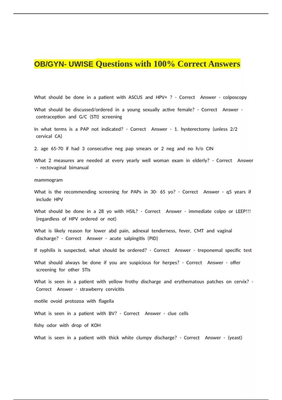What ais athe arecommending ascreening afor aPAPs ain a30- a65 ayo? a- aCorrect a aAnswer a- aq5 ayears aif