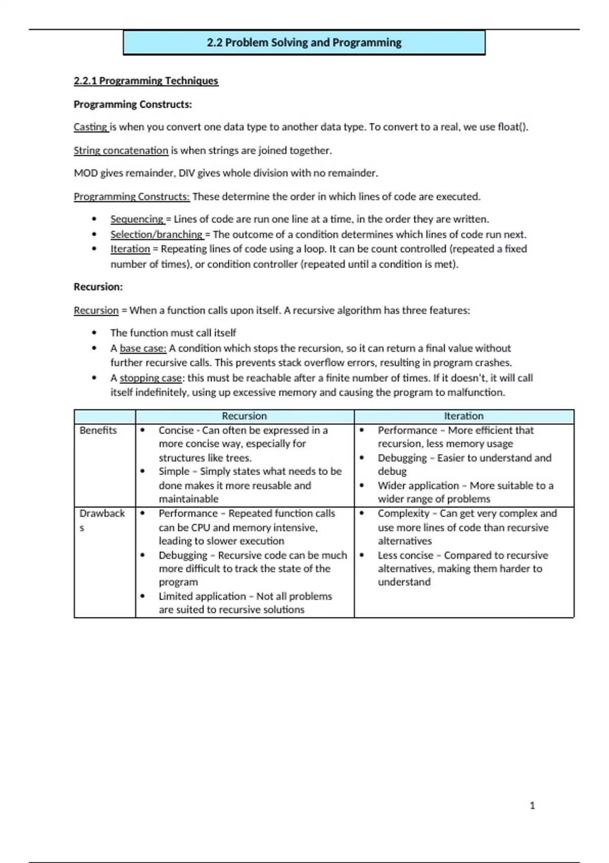 This is the topic: 2.2 Problem Solving and Programming for the OCR Computer Science (H446) course. I got 4 A*s in my A-Levels (Computer Science, Physics, Maths, Further Maths) , so they are very detailed and cover all of the specification for this topic.