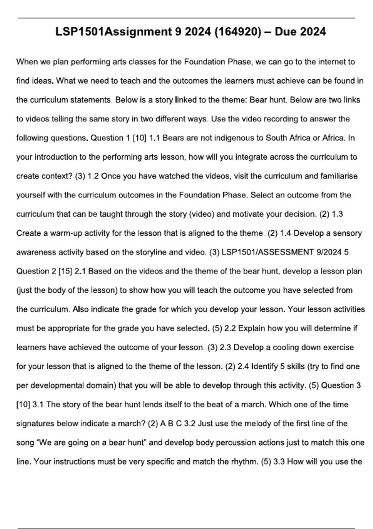 LSP1501 Assignment 9 (COMPLETE ANSWERS) 2024 (164920) - DUE 8 October 2024.