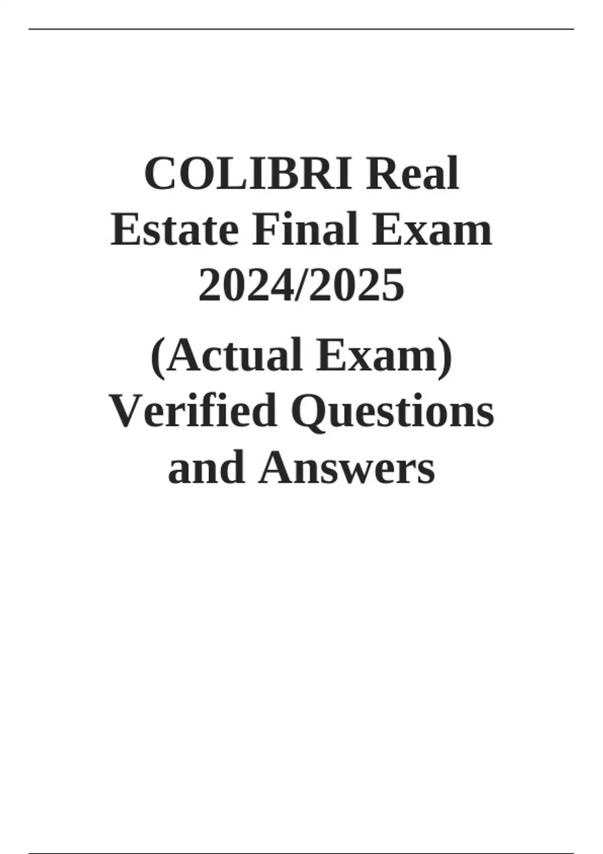 , COLIBRI REAL ESTATE EXAM