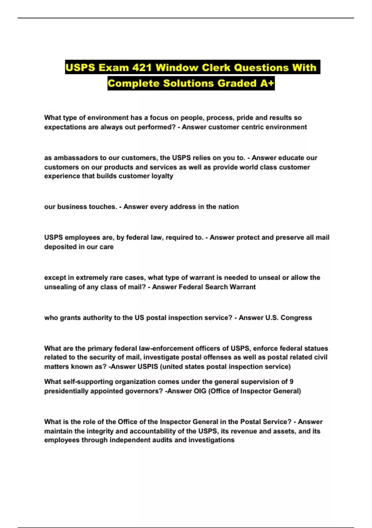 USPS Exam 421 Window Clerk Questions With