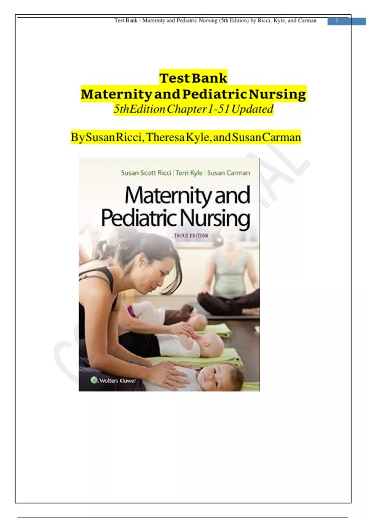 , Testl Bankl -l Maternitylandl Pediatricl Nursingl (5thl Edition)l byl Ricci,l Kyle,l andl Carman 3