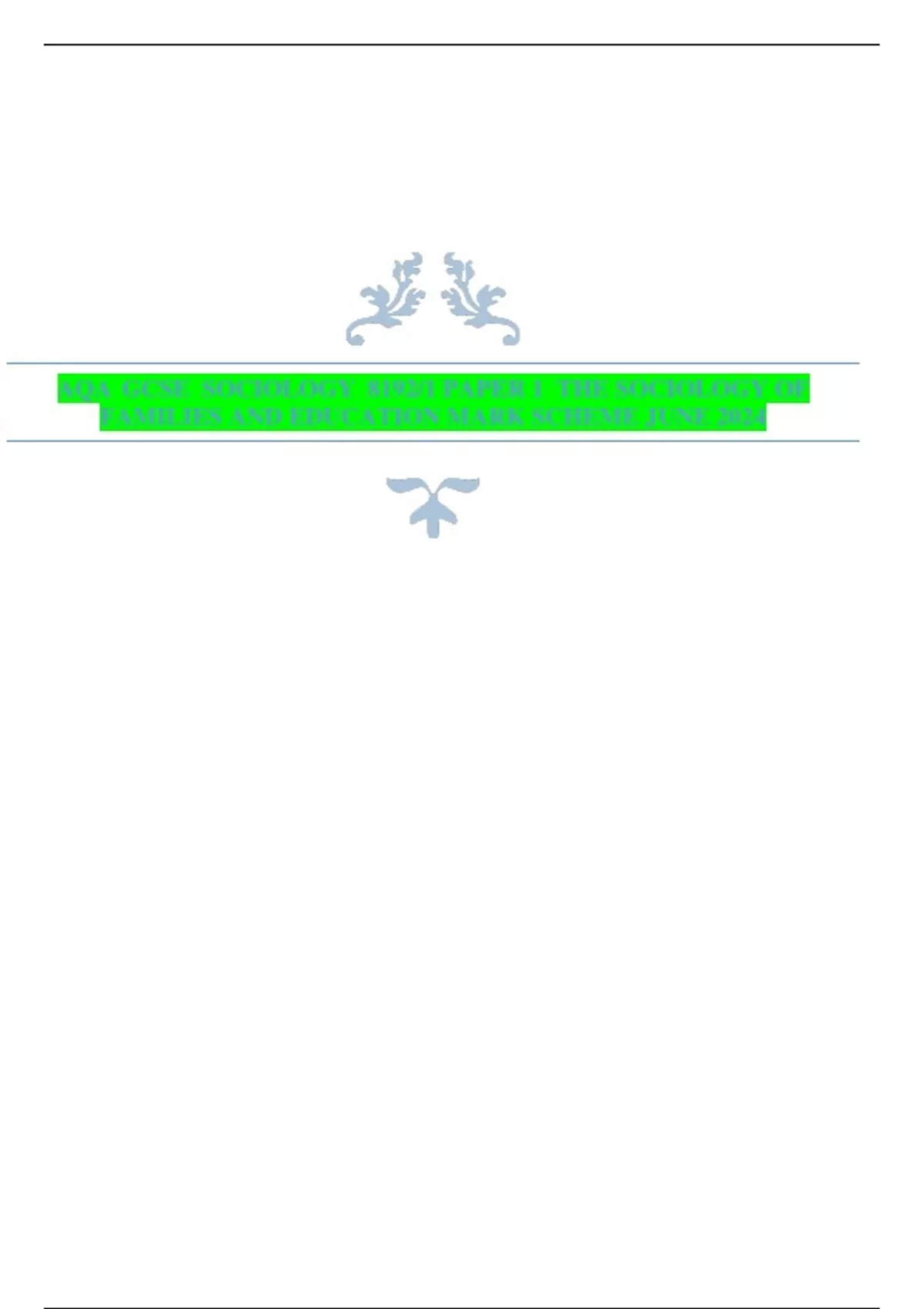 FAMILIES AND EDUCATION MARK SCHEME JUNE 2024