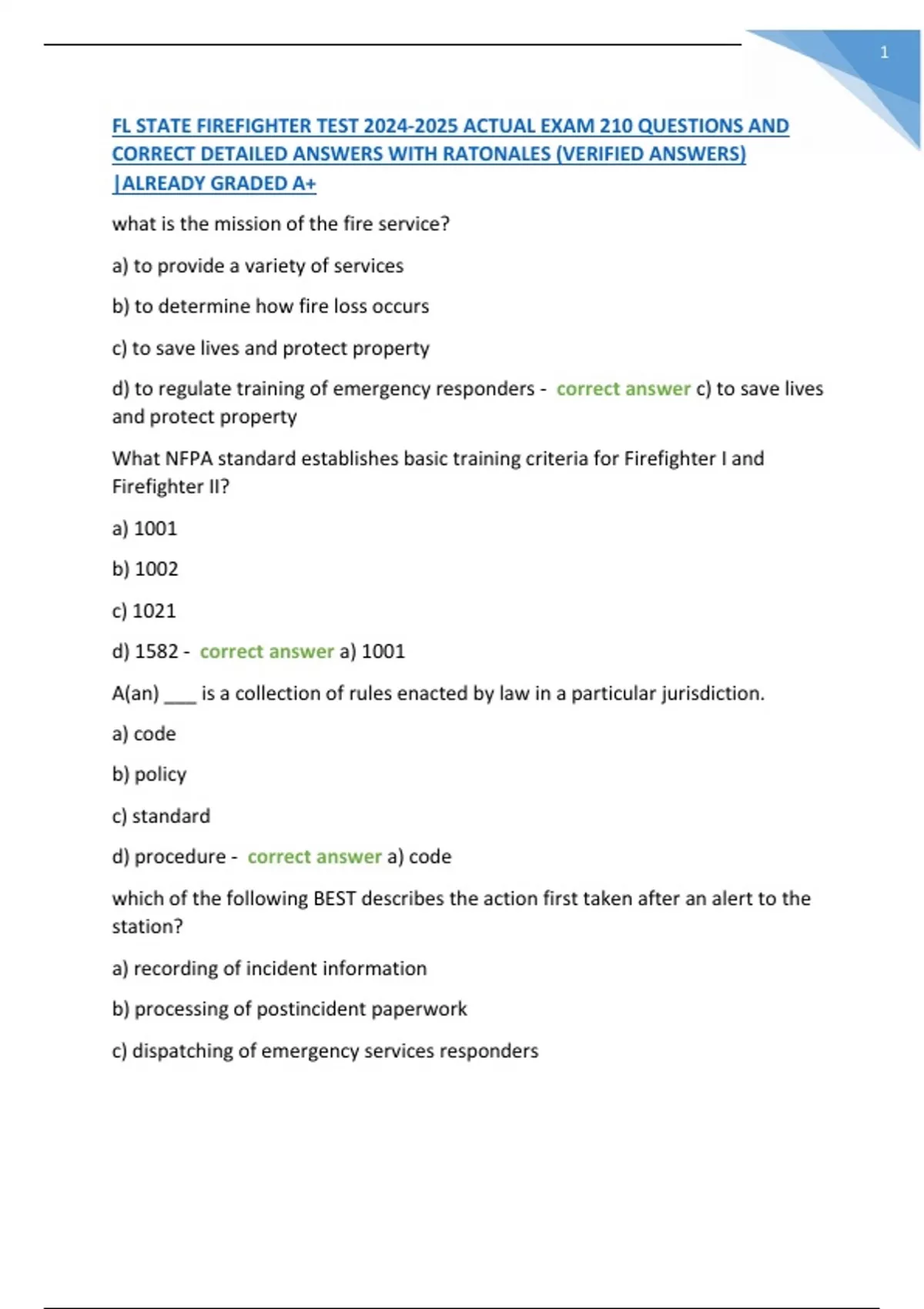 FL STATE FIREFIGHTER TEST ACTUAL EXAM 210 QUESTIONS AND CORRECT DETAILED ANSWERS WITH RATONALES (VERIFIED ANSWERS) |ALREADY GRADED A+