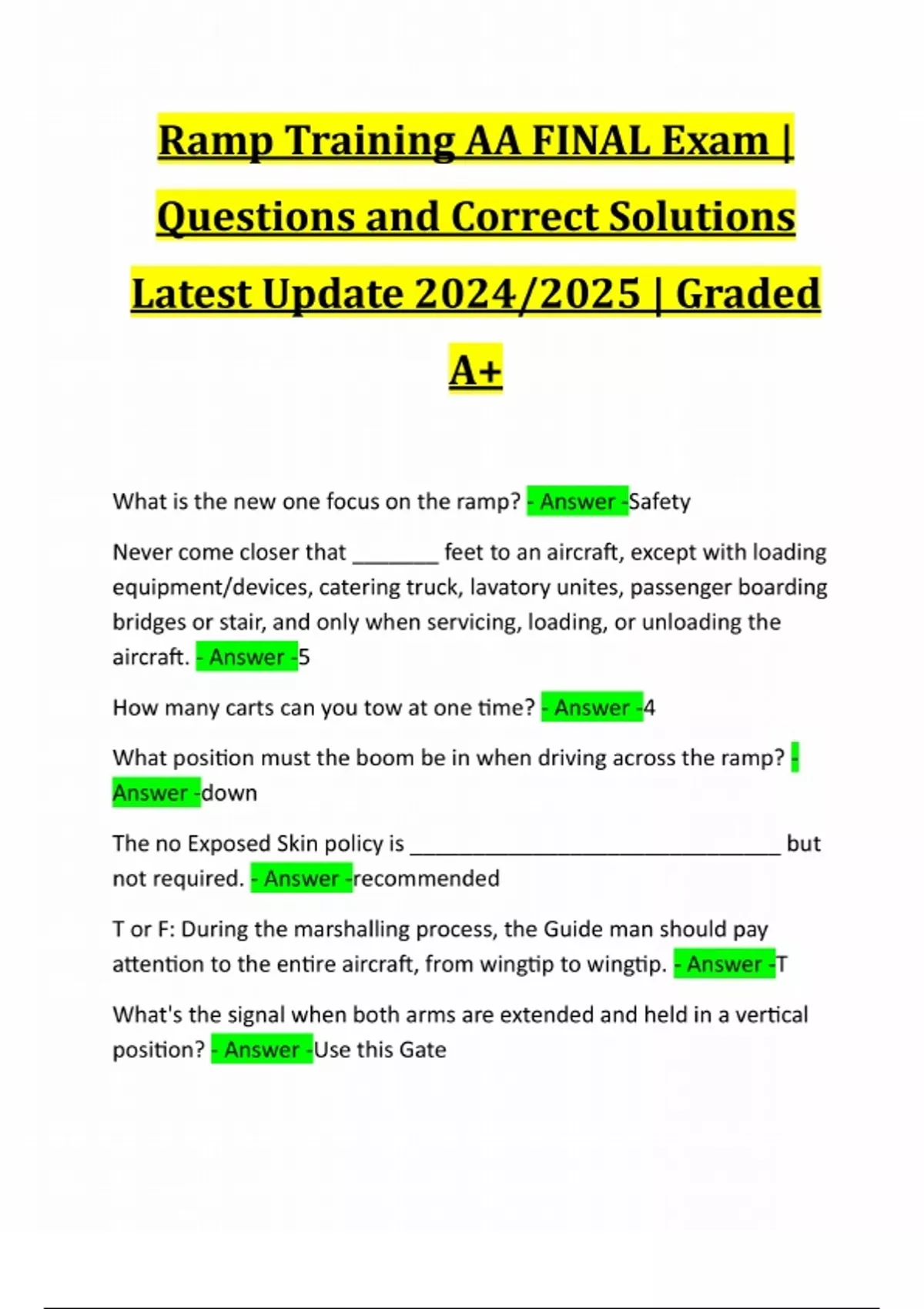 Ramp Training AA FINAL Exam | Questions and Correct Solutions Latest Update 2024/2025 | Graded A+