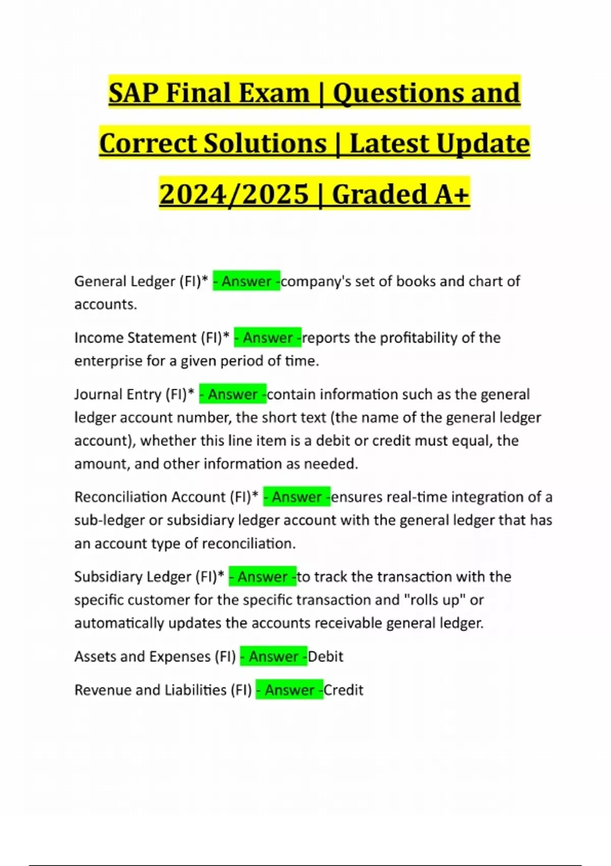 SAP Final Exam | Questions and Correct Solutions | Latest Update 2024/2025 | Graded A+